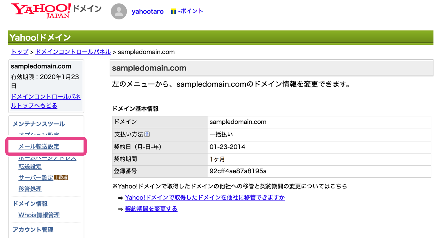 - 3.Yahoo!ドメインでメール転送設定を確認する
