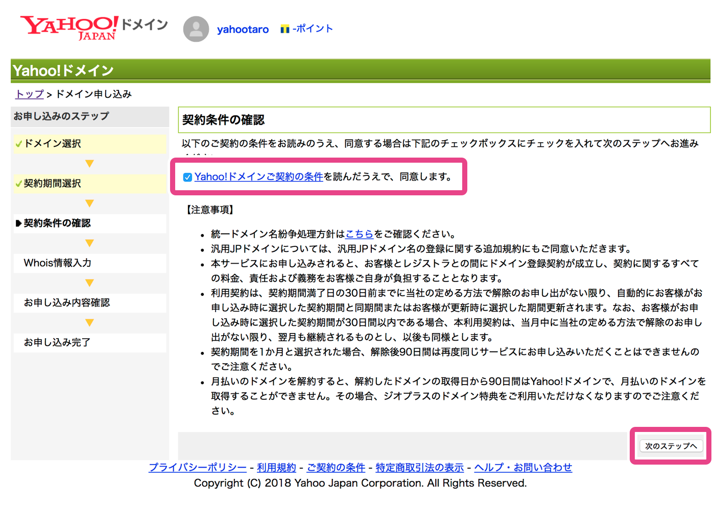 現在お持ちのドメインはYahoo!ドメインで所持しておりますので、移管先サービスで新たに取得する必要はありません。 - 8.移管の申し込みをする