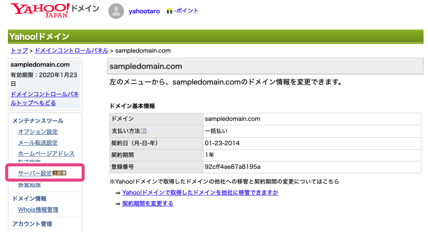 独自ドメイン(有料)をYahoo!ドメインで継続利用する